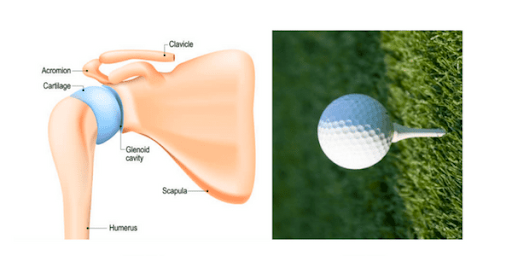 When there is weakness in the muscles or pain that inhibits muscles from working properly, excess movement of the humerus can result, which leads to unnecessary force being placed on the structures above. A common analogy used to visualize what the rotator cuff is doing is imagining a golf ball on a tee. The rotator cuff’s role would be similar to that of your hand stabalizing the ball on the center of the golf tee.